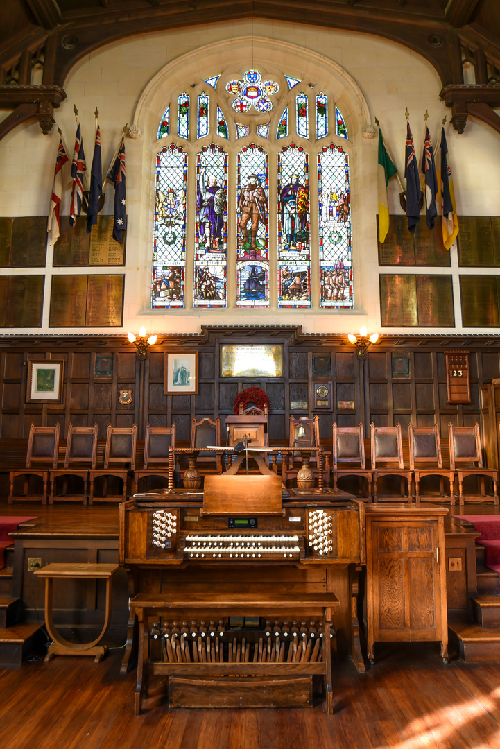 The Waitaki Boys’ High School Hall of Memories, designed by Oamaru architect J M Forrester and opened in 1927, stands as one of the country’s finest war memorials. The hall is a memorial to the Old Boys who served in World War One and future conflicts, stands as a testament to those who served their King and country. The striking building, with its castellated battlements has special historical, social, architectural and commemorative significance.